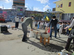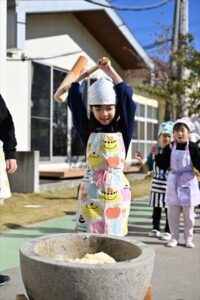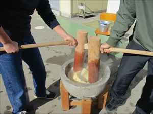 先週木曜日に、【 もちつき 】が行われました。青空でとても気持ちの良い日になりました。