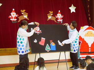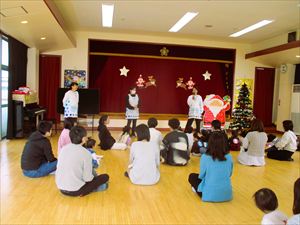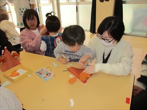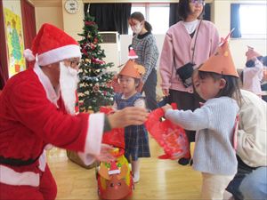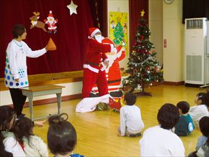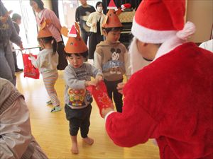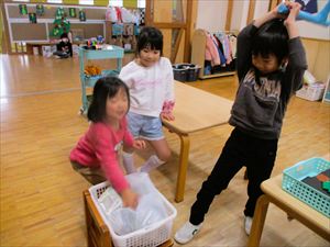 保育室では、朝から子ども達が 【 もちつきごっこ 】をして期待に胸を 膨らませていました。 |