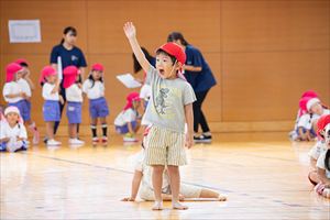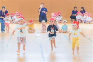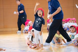 運動会ナイスショット第3弾です。こちらは、たんぽぽ組(年少)、ひまわり組(年中)、