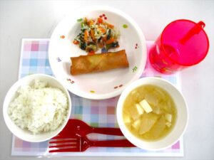 ごはん 春巻き もやしのナムル(小松菜・人参) 味噌汁(豆腐・大根) |