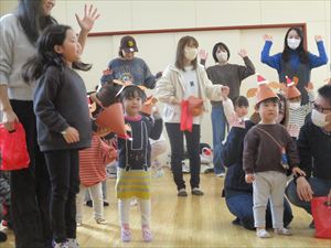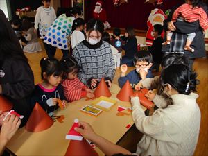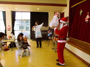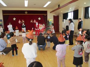 保育室では、朝から子ども達が 【 もちつきごっこ 】をして期待に胸を 膨らませていました。 |