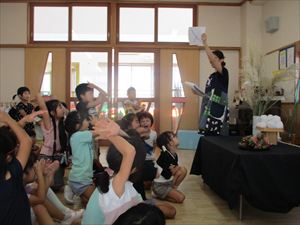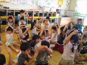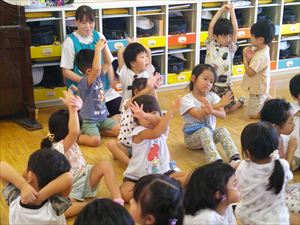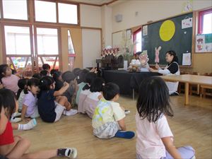 ペープサートで、お月見の由来のお話を聞いたり、 ひまわり組(年中)さんとゆり組(年長)さんは、 紙芝居【 つきみだんごとまほうのぼうし 】を楽んだりしました。 いい耳で由来や紙芝居のお話を聞いていた子どもたち。 お月見の事が、よく分かったみたいだね~!! そこで、○✖クイズに挑戦です!! 『 お供えをするのは、お寿司である 〇か✖か 』 『 昔、お月様は神様とよばれていた 〇か✖か 』 最後に 今月の歌 【 つき 】を歌ったり、 ♬ 月夜のポンチャラリン ♬を踊ったりしました。 今夜は、おうちの人と一緒に綺麗なお月様を見れるといいね💓 |