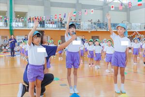 友だち同士で力を合わせて様々な技を見せるパラバルーン! 音楽に合わせて、練習してきた演技の披露です♪ カラフルで迫力のある演技は、開会式にふさわしくとっても華やかな運動会 のスタートになりました~☆☆☆ |