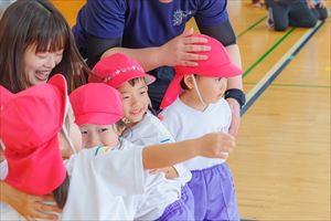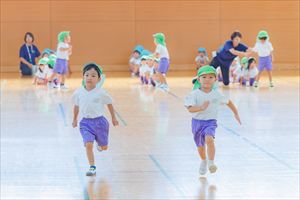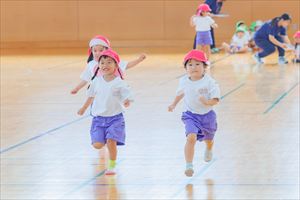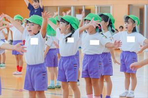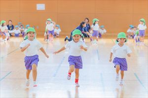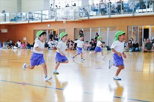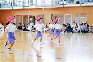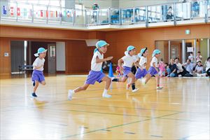 運動会ナイスショット第3弾です。こちらは、たんぽぽ組(年少)、ひまわり組(年中)、