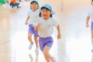 ゆり組(年長)の 徒競走 ヨーイドン!の様子です。 一人ひとりが真剣な顔つきで走る姿、とってもかっこよかったですね! |