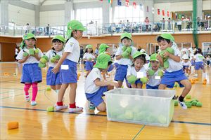 全員冬服の制服に衣替えになりました。 子どもたちは、紺色帽子、紺色ジャケット、 を羽織って、登園してきます。 春日こども園では、毎日制服を着て登園し、 保育室で私服に着替えて過ごします。 運動遊びがある日は、体操服に着替えますが 終わったら私服に着替え、降園時は、 再び園服に着替えます。 |