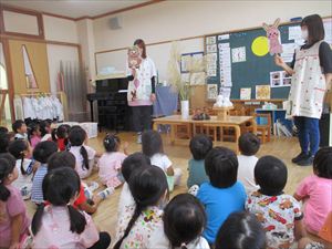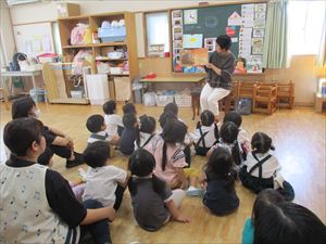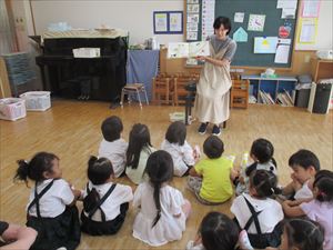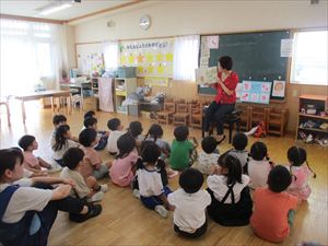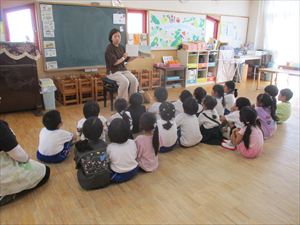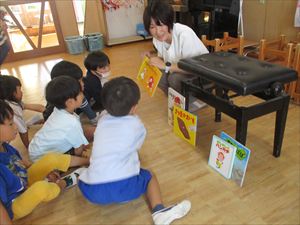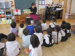 読み聞かせボランティアの方による絵本の読み聞かせがありました。季節や年齢に合った絵本、子どもたちの心をくすぐる絵本。