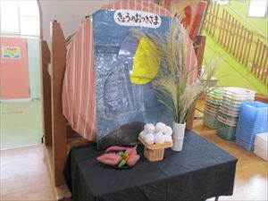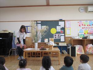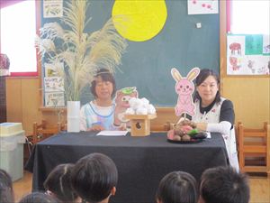今日は、【 お月見会 】が行われました。十五夜に向けて月の満ち欠けの様子が