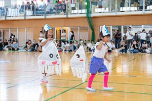 歌って踊っちゃおう~♪ ♬ おすしすしすし ♬ と ♬ ぼくたちぶどう ♬ を、元気と笑顔いっぱいに踊っていました💓💓💓 |