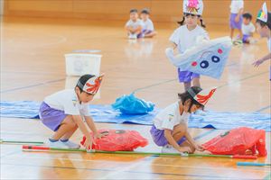 『 上手くたためないの? ぼくが、やってあげるよ! 』 『 忘れ物はない? あっ、これもしまわないと! 』 優しく助けてあげるほっこりした光景をたくさん見ることが出来ました。 異年齢活動を繰り返し行うことで、子ども達の思いやりの心が 育っていて、とても嬉しくなりました。 |