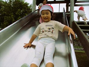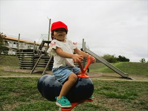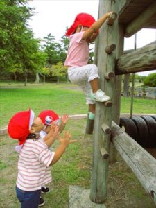秋探しをした後は、こども園にない遊具で元気いっぱいに遊びました。