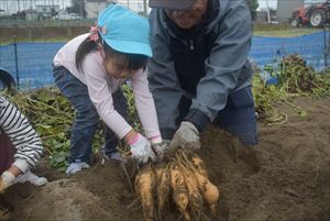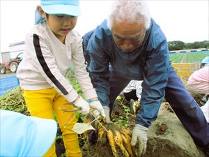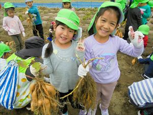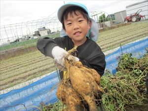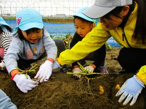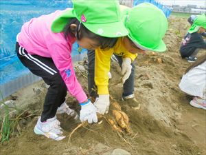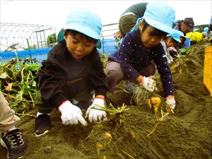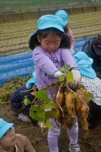 地元の玉ちゃん会のご厚意で 6月にゆり組(年長)さんが サツマイモの苗植えをさせていただきました。 玉ちゃん会の皆さんが丁寧に愛情込めて 育てて下さったサツマイモを 今回、ゆり組さんだけでなくひまわり組(年中) さんも一緒に掘る体験ができることになりました。 |