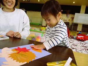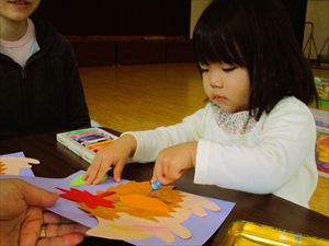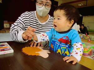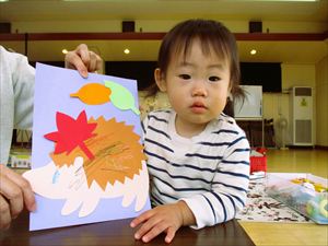 最後は、なお子先生と一緒にご挨拶をします。 遊びに来てくれたお友だちには、折り紙のお土産がありますよ。 次回のちびっこ広場は、一回お休みで11月26日㈬になります。 お間違いのないようご注意ください。 |