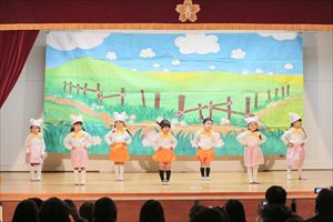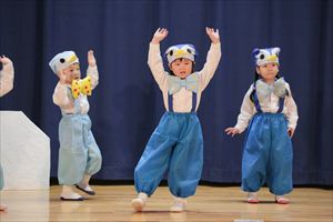 | 発表会第2部は、たんぽぽ組(年少)さんによる踊りです。