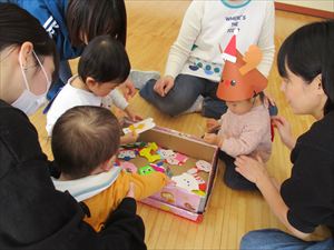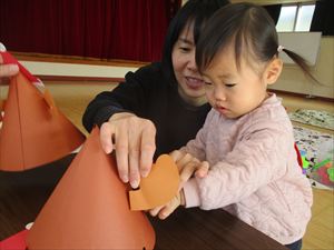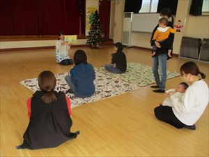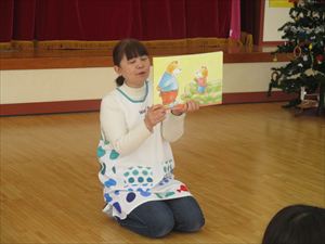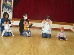 ♬ クリスマスのうたがきこえてくるよ ♬ の音楽に合わせて 元気いっぱいに踊っちゃおう~♪ 紙芝居の読み聞かせ【 くーすけのクリスマス 】 もうすぐクリスマス。くーすけは、サンタさんのお手伝いがしたいと言ったり、 サンタさんからのプレゼントを楽しみにしたり、くーすけの言動がほほえましく、 とてもかわいらしいお話です。 |