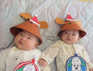 今回の製作は、【 トナカイの三角帽子 】です。 角とミニサンタ帽子を両面テープを剥がして貼ったら、 目と赤い鼻のシールを貼って、完成~★★★ とっても可愛らしいトナカイの帽子を被って、ハイ ポーズ📸 |