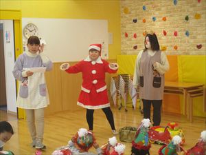 | 先生達による寸劇【 サンタさんがやってきた 】を楽しみました。可愛い動物たちが、今日も元気に遊んでいます。