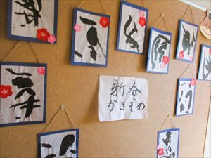 大胆に墨をつけて、ドン!とダイナミックに半紙に筆を降ろします。 わぁ~ とっても芸術的な作品が完成しました~🎍 |