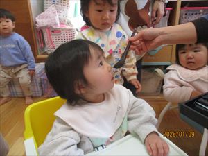| こちらは、さくら組(2歳児)さんの様子です。さくら組の子どもたちは、自ら積極的に書く子もいました。