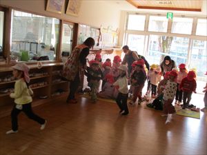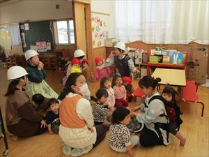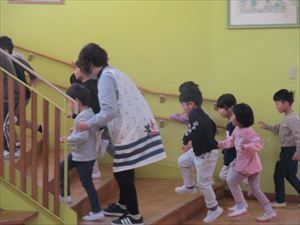 どの子も一生懸命に取り組んでいました。 園長先生からは、 『 今日は、地震がきてからの津波を想定した訓練でした。 地震で、給食室から火事が発生する場合もありますね。 前に不審者からの避難もやりました。今、何が起きているかを 知るためには、おしゃべりをせず、先生の話をしっかり聞いて 自分の目て見てどうしたらいいかを考える。 大切な命を守るためにも しゃべらないという約束を守りましょう 』 とお話がありました。 いつやってくるか分からない地震。ご家庭でも様々な災害を想定して 避難の仕方、避難場所などを再確認してみてください。 |