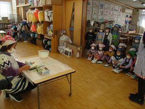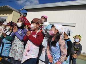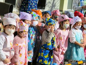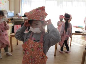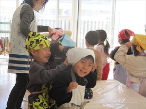 | 今日は、子どもたちがとっても楽しみにしていた【 大鍋 】の日。身支度もワクワクしながらしている子ども達。