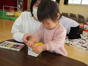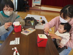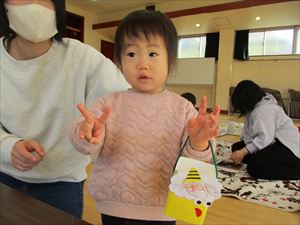 ご挨拶の後は、折り紙のお土産がありますよ~🌸🌸🌸 次回のちびっこ広場は、2月4日㈬です。 |