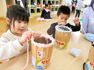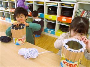 | ゆり組(年長)の子どもたちは リリアン編みに挑戦しています。