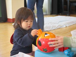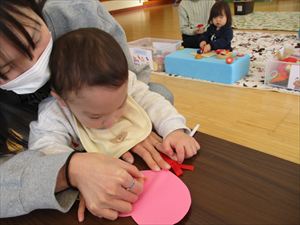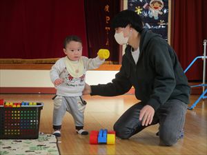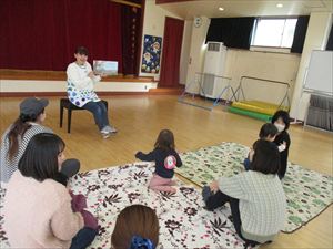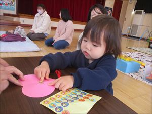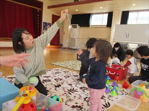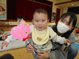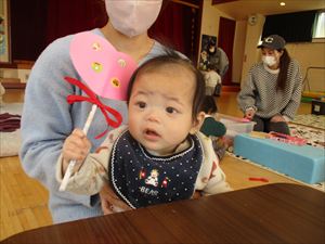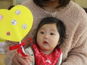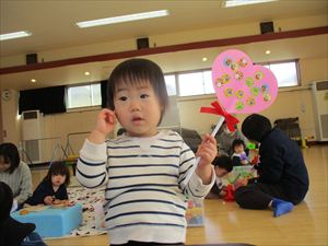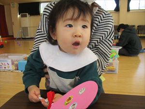 最後は、なお子先生と一緒にご挨拶をします。 遊びに来てくれたお友だちには、折り紙のお土産がありますよ。 次回のちびっこ広場は、一週お休みで2月18日㈬になります。 お間違いのないよう、ご注意ください。 |
