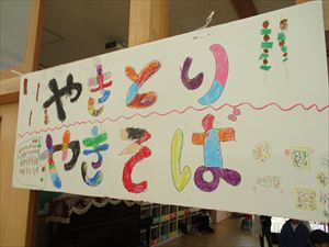 ごっこ遊びでは、子どもたちが意見を出す大切さ、友達と力を合わせて 作り上げる楽しさを感じながら、製作活動で体験した技法を使い、 思い思いの活動をしてきました。どの子も楽しみながら準備をしてきました。 子ども達の思いがたくさん詰まったお店屋さんです。 |