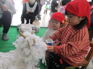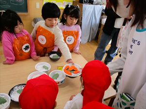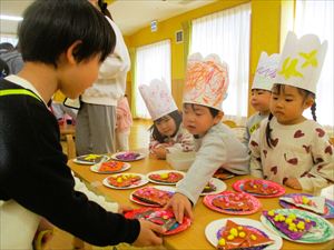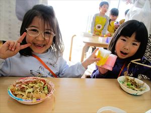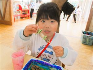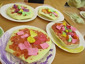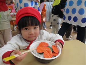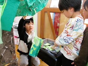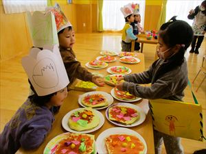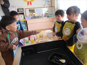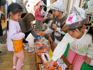| こちらは、【 食べ物屋さん 】のひまわり組(年中)さんの様子です。