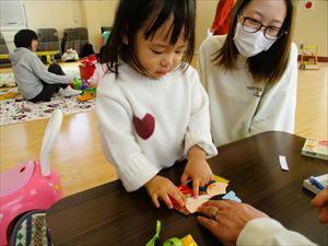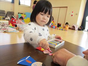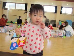 かわいいお友だちが先生と一緒に元気よく終わりの挨拶をしてくれました。 遊びに来てくれたお友だちには、折り紙のお土産がありますよ~!! 次回のちびっこ広場は、2月25日㈬です。 ホールには、春が近づいていると感じる優しい陽射しが 入ってきます。まだ頬に当たる風は冷たいですが、過ごしやすい 時間が増えました。 ちびっこ広場では、園庭開放、園見学も予約なしでできます✿✿✿ ご近所のお友だちも誘って、お気軽に遊びにいらしてくださいね。 |