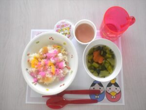ちらし寿司(インゲン・桜でんぷ・かまぼこ)