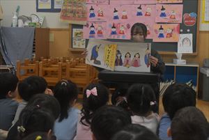 幼児部の【 ひなまつり会 】は、各学年に分かれて行いました。 『 3月3日は、みんなが病気になったり、事故にあったりしないで 無事に大きくなりますように幸せに暮れせますようにってお願いを する日なんだよ 』 『 ひなあられの色に意味があるのは、知ってるかな? 白は大地のエネルギー、緑は木のエネルギー、ピンクは生命の エネルギー。悪いことや病気を追い払う願いを込めて食べるんだよ 』 ひな祭りの由来を聞いたり、紙芝居を楽しんだりしました。 『 おひなさまのとなりにあるあかりは、ちょうちんである 〇か✖か? 』 『 ひな人形の2段目に並べるのは、ひなあられと菱餅である 〇か✖か? 』 どの学年も盛り上がっていたのは、ひな祭り○✖クイズです。 正解の子達は、ジャンプしたり友達とハイタッチしたりして 喜んでいました~☆☆☆ ♫ あかりをつけましょ ぼんぼりに~ おはなをあげましょ もものはな~ ♫ 最後は、みんなで ♫ うれしい ひなまつり ♫の歌を歌いました。 春日こども園の子ども達が、これからも病気をせず、元気にスクスクと 育っていきますように・・・🌸 |