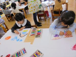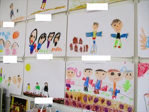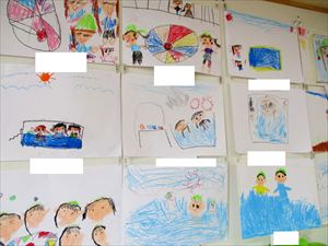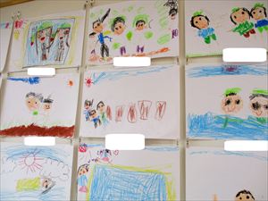 | ひまわり組(年中)さんが、1年間で一番楽しかったことを画用紙にクレヨンで描きました。